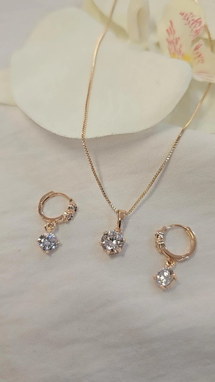نیم ست تک نگین برند ژوپینگ اصل با آبکاری طلا رنگ ثابت طرح جواهر
