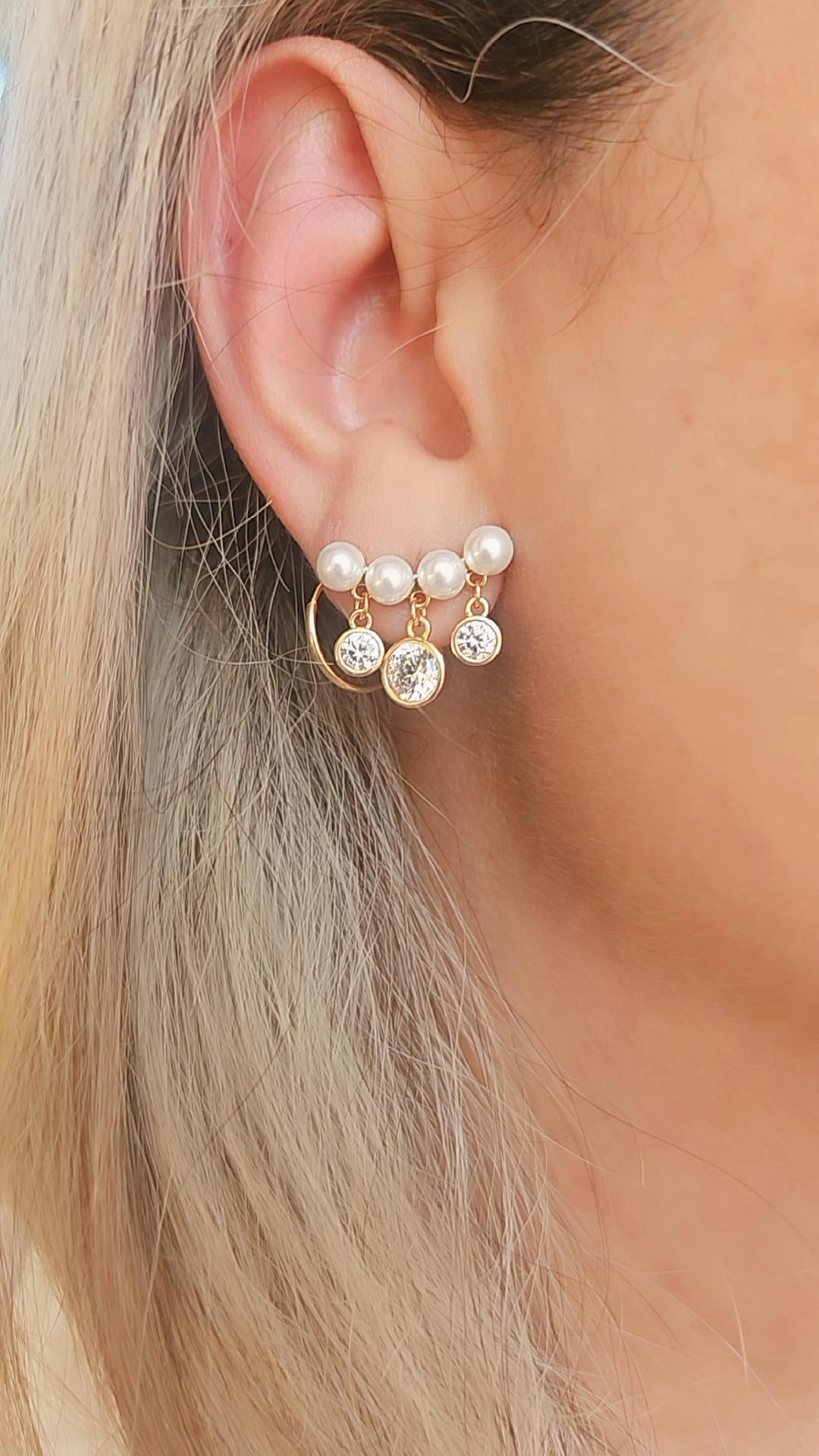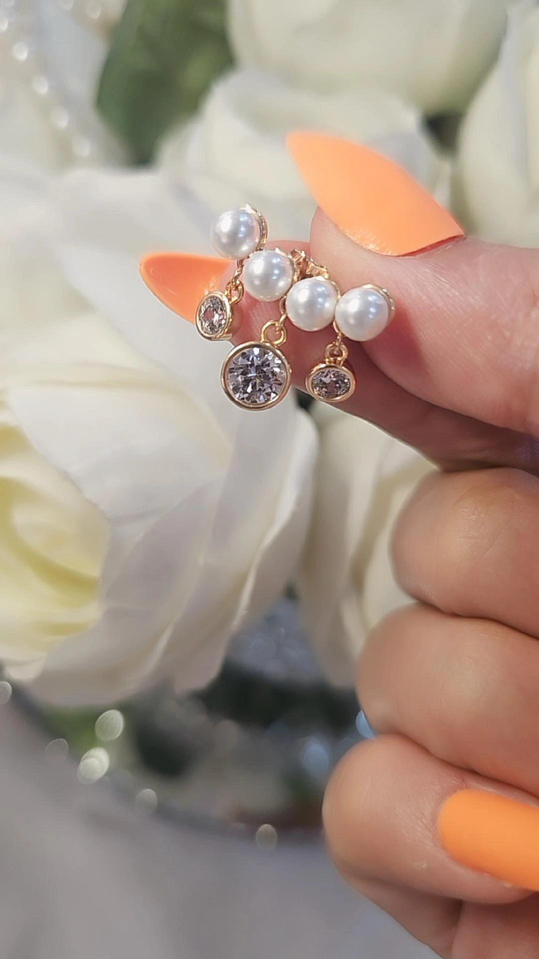 گوشواره مروارید و نگین بسیار زیبا برند ژوپینگ نگین و مرواریدها هرگز ریزش ندارند آبکاری طلا رفته و رنگ ثابت است ضد حساسیت است و استفاده آن برای پوست با طلا تفاوتی ندارد