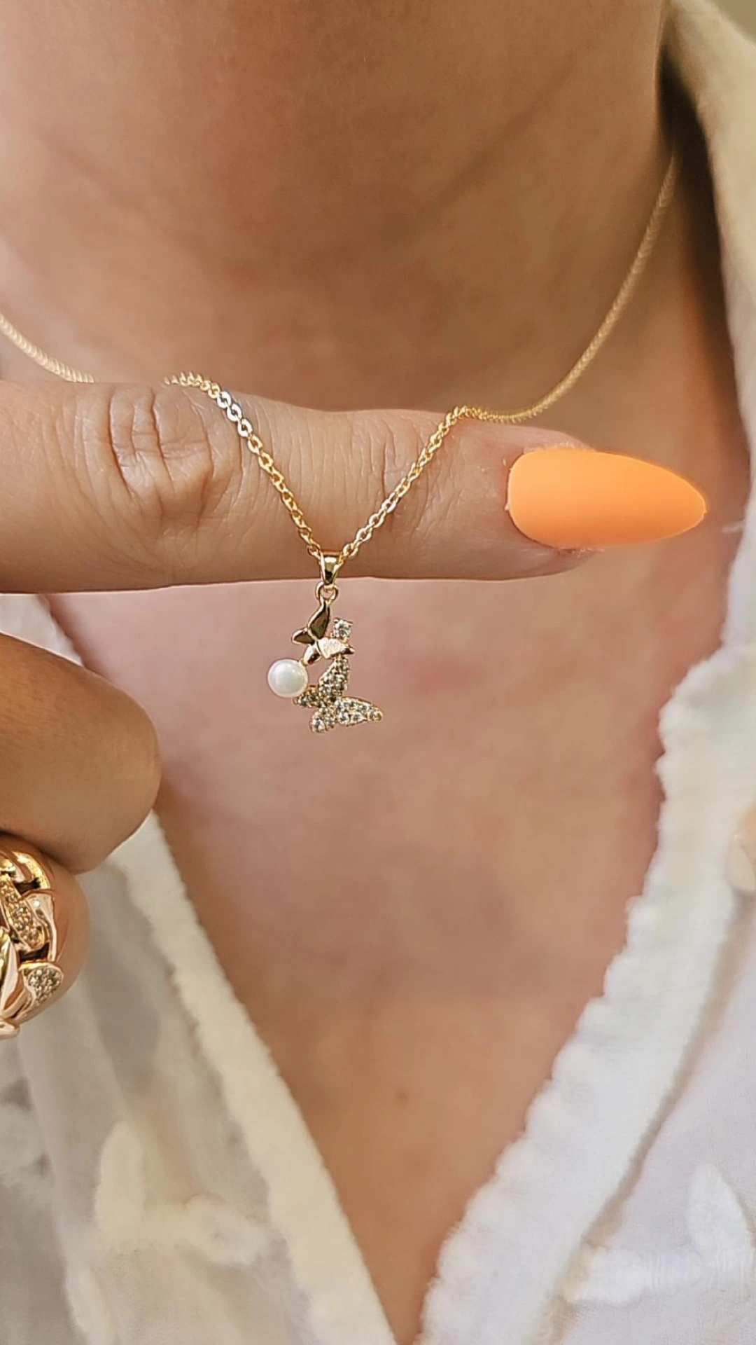 نیم ست مدل پروانه و مروارید آبکاری طلا رنگ ثابت برند ژوپینگ اصل بدون ریزش نگین
