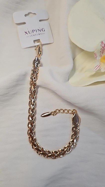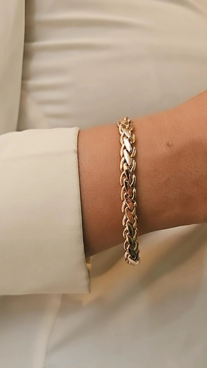 دستبند مدل بافت آبکاری طلا رنگ ثابت کاملا مشابه نمونه طلا برند ژوپینگ اصل