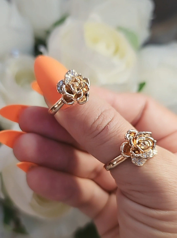 انگشتر مدل گل رز آبکاری طلا رنگ ثابت برند ژوپینگ اصل