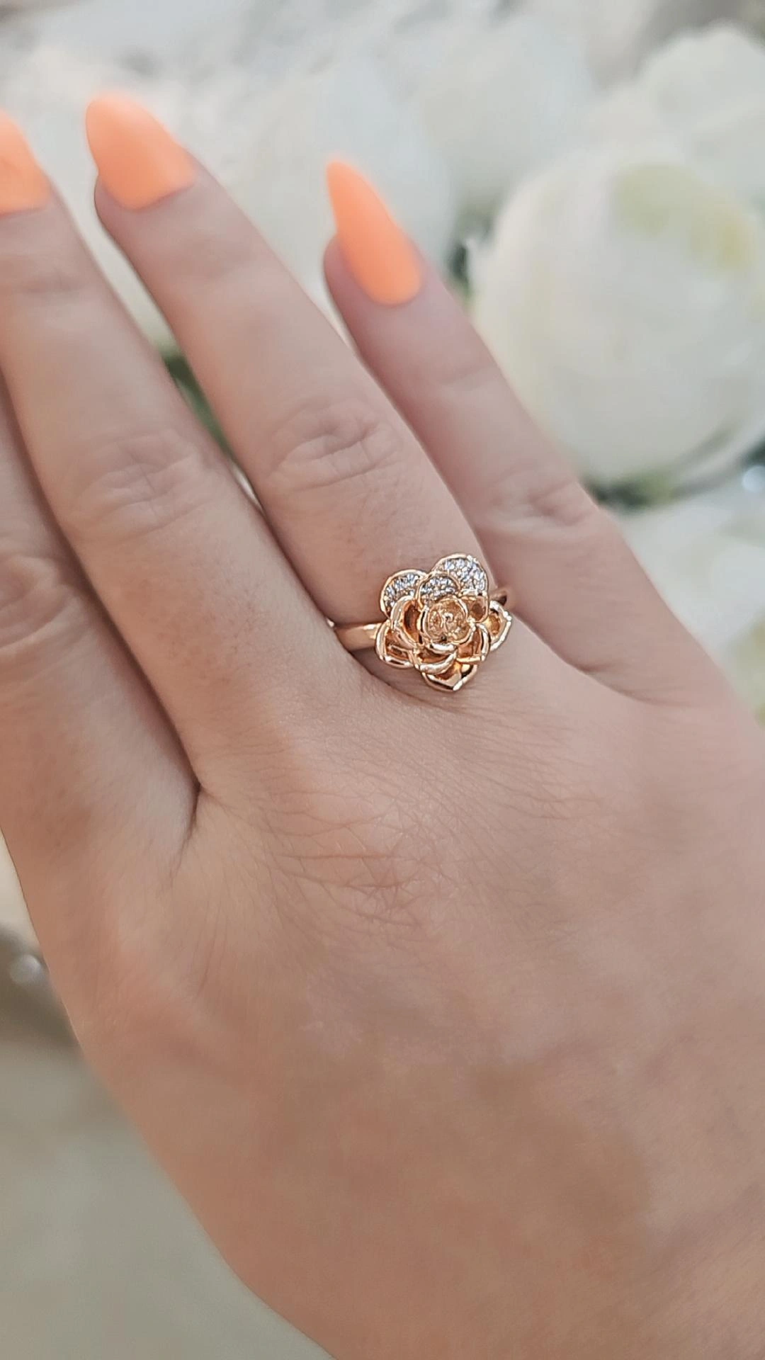 انگشتر مدل گل رز آبکاری طلا رنگ ثابت برند ژوپینگ اصل