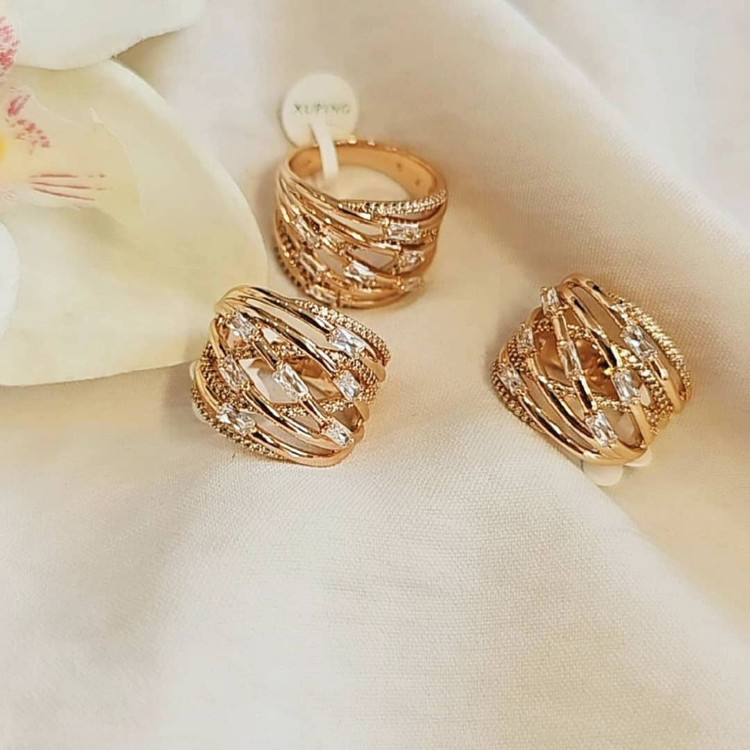 انگشتر مدل نگین مستطیلی آبکاری طلا رنگ ثابت برند ژوپینگ اصل با نگین مخراج کاری شده بدون ریزش