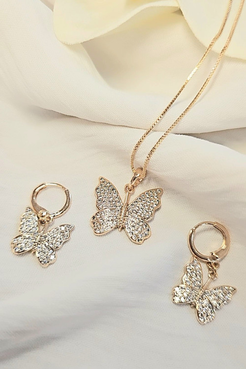 نیم ست پروانه لاکچری برند ژوپینگ آبکاری طلا رنگ ثابت نگینها مخراج کاری مطابق نمونه طلا