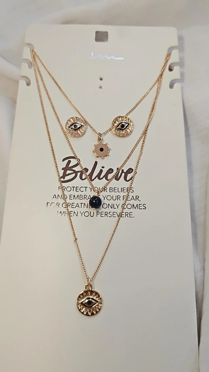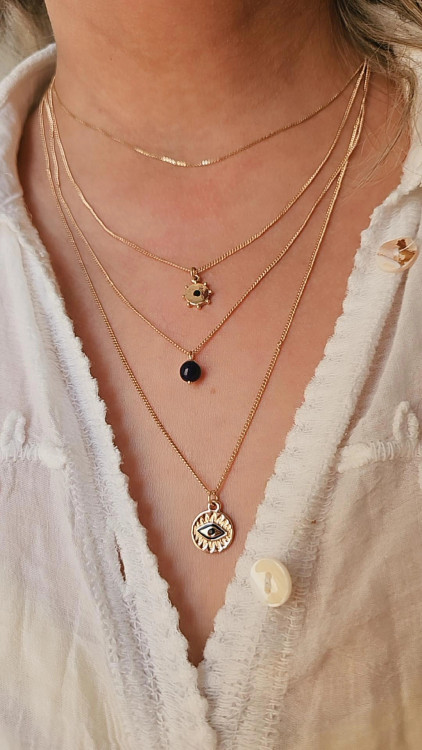 نیم ست اروپایی چشم برند بی لیو محصول کشور آلمان سه ردیف گردنبند ترند امسال همراه با گوشواره جنس استیل رنگ ثابت 🌹