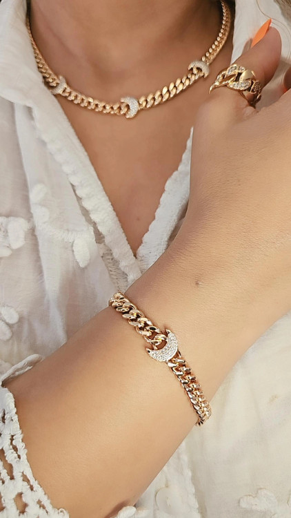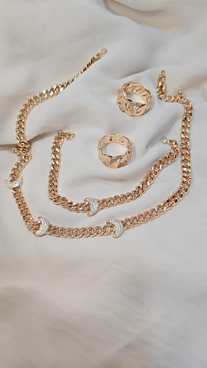 نیم ست کارتیر مدل ماه نگین دار آبکاری طلا رنگ ثابت برند ژوپینگ اصل